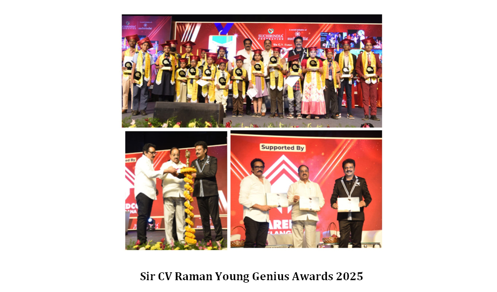 To experience and encourage the talent of these prodigious young minds the foundation is celebrating its annual function, Sir CV Raman young Genius awards 2025 at Lalitha Kala Thoranam , Public Gardens , Nampally. The talent exam was conducted in over 1000 schools with over 100000 students participating this year across the state. The adjudged 20 gold medals, 40state rankers & 400 District rankers along with 10 Chathralaya Puraskars& 11 Guru Brahma Awards will be awarded to institutions and to the teachers who had bestowed in the shaping of these young minds. The event follows by the release of Suchirindia Foundation Coffee Table book at convivial Function. Apart from various formal events that bejewel the day’s event which is expected to have an attendance of 2000 people including high dignitaries, Intellectuals along with parents & students from the entire state, a Motivational and Inspiring Talk from Mr. Abhishek Sannidhi.